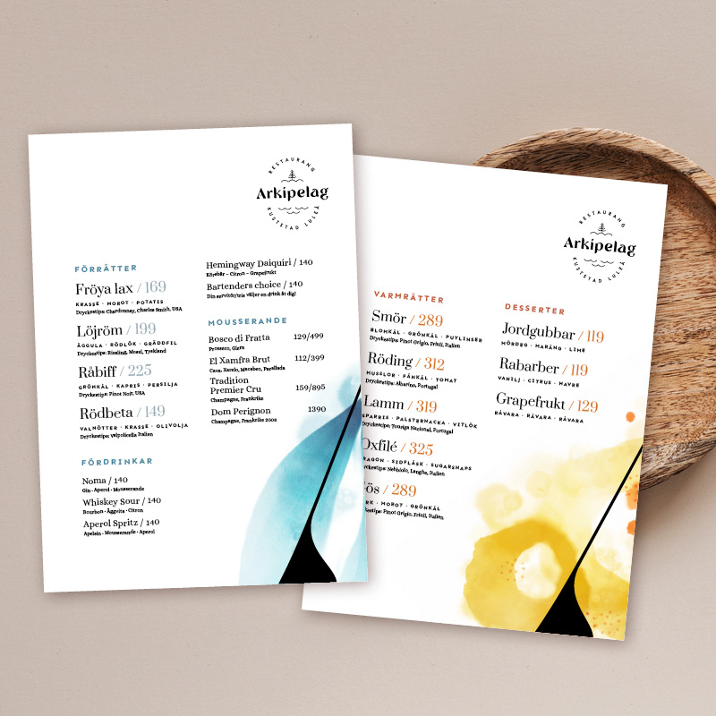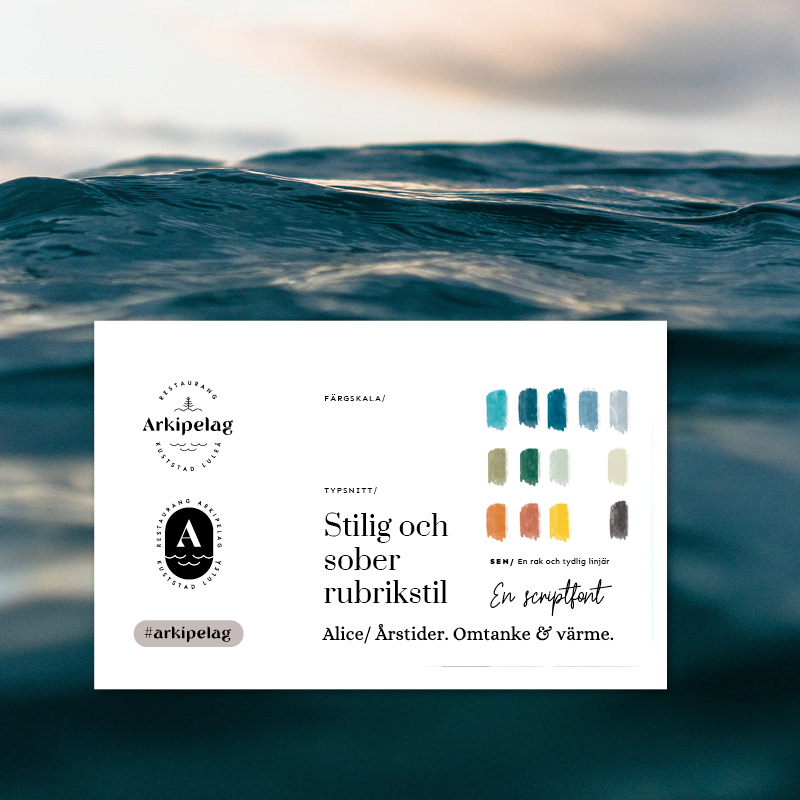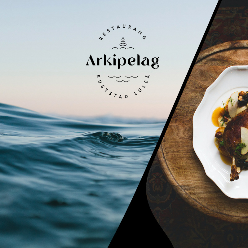Varumärkesdesign för Restaurang Arkipelag i Kuststad Luleå. Logotype och grafisk profil med mönster, grafik och konceptillustrationer. Menydesign och skyltning. I samarbete med Tromb som tagit fram restaurangens varumärkesstrategi.
