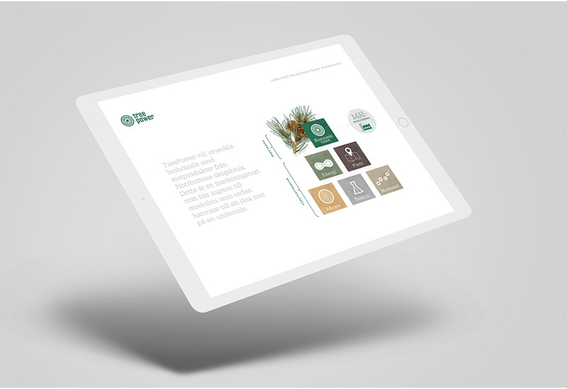 Översikt och kompletteringar av grafiska profilen, illustrationer och ikoner, modell och Powerpoint-presentation till Luleå Business Regions projekt TreePower.